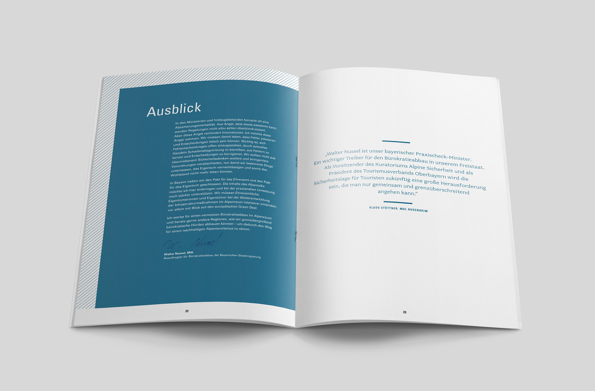 Beauftragter für Bürokratieabbau der Bayerischen Staatsregierung Walter Nussel, MdL beim Bayerisches Staatsministerium für Finanzen und für Heimat. In Zusammenarbeit mit der Hanns-Seidel-Stiftung e.V. //Konzeption, Gestaltung, Barrierefreies PDF