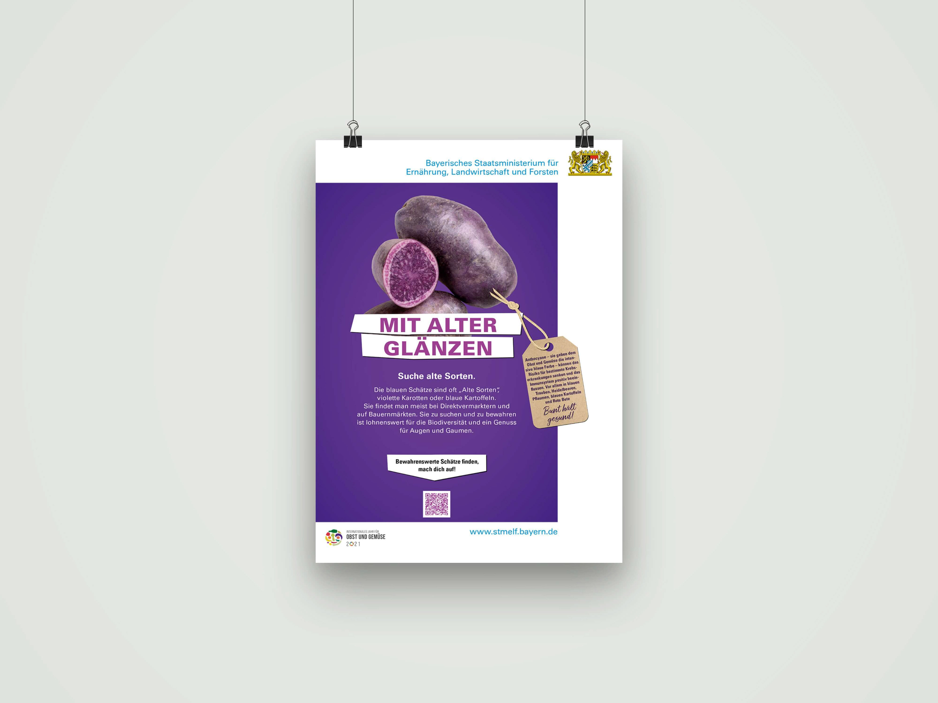 Plakatserie für die Landesgartenschau 2021 im Auftrag des Bayerischen Staatsministerium für Ernährung, Landwirtschaft und Forsten in Zusammenarbeit mit KErn (Kompetenzzentrum für Ernährung) //Konzeption, Text, Gestaltung, Produktion